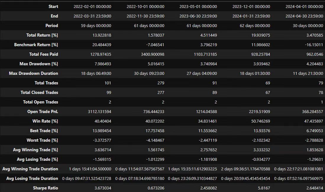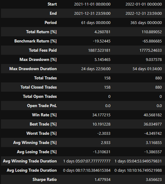 If we take a look at AI MeanRev’s historical backtest performance for BTC during range-bound leaning market regime months, we can see that it’s alpha-generation ability during such environment, with a high win-rate and an asymmetric average win/loss.